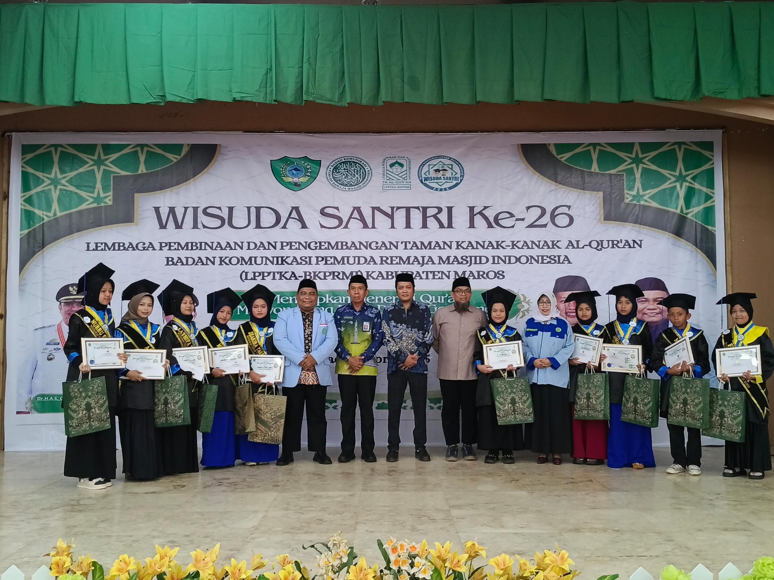 WAJAHINDONESIA.CO.ID, MAROS – Lembaga Pembinaan dan Pengembangan Taman Kanak-Kanak Al-Qur’an-Badan Komunikasi Pemuda Remaja Masjid Indonesia (LPPTKA-BKPRMI) Kabupaten Maros menggelar Wisuda Santri ke-26 di Gedung Serbaguna Maros, Minggu, 27 April 2025.